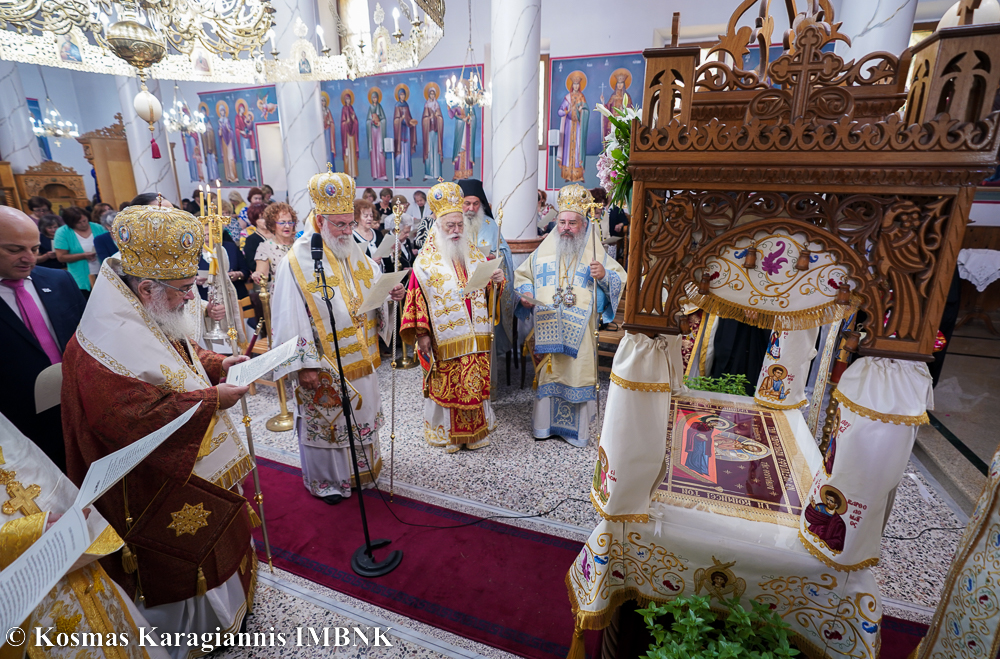 Στο Πολυαρχιερατικό Συλλείτουργο προεξήρχε ο Σεβασμιώτατος Μητροπολίτης Ιλίου, Αχαρνών και Πετρουπόλεως κ. Αθηναγόρας και συμμετείχαν οι Σεβασμιώτατοι Μητροπολίτες Νικοπόλεως και Πρεβέζης κ. Χρυσόστομος, ο οποίος κήρυξε τον θείο λόγο, Λαγκαδά, Λητής και Ρεντίνης κ. Πλάτωνας, ο οποίος χοροστάτησε στον όρθρο και ο Ποιμενάρχης μας, Σεβασμιώτατος Μητροπολίτης Βεροίας, Ναούσης και Καμπανίας κ. Παντελεήμων.