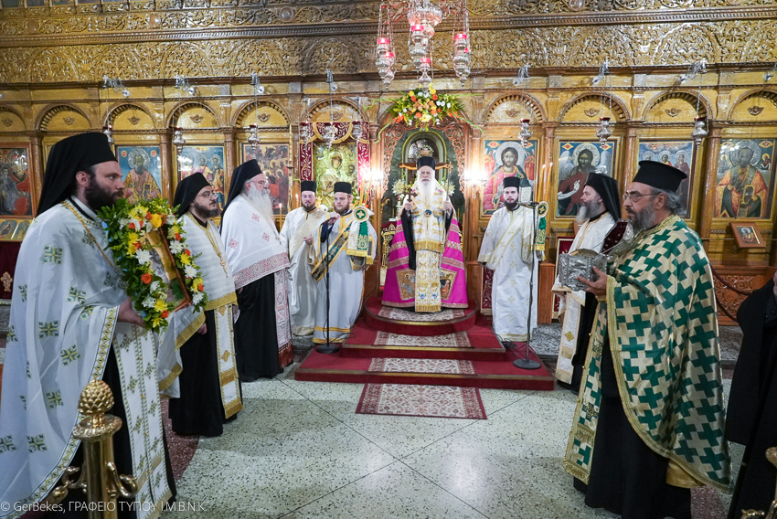 Ακολούθησε Ιερά Λιτανεία της Τιμίας Κάρας και της Ιεράς Εικόνος του εορταζομένου Αγίου εντός του Ιερού Ναού, λόγω δυσμενών καιρικών συνθηκών.
