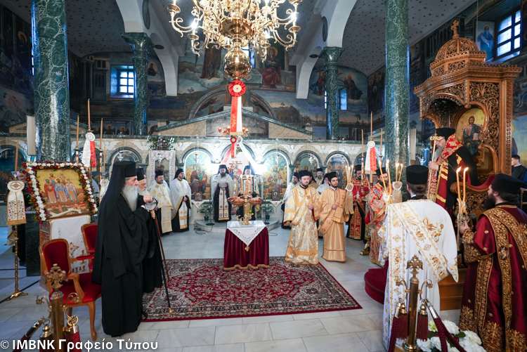 Χοροστάτησε ο Σεβασμιώτατος Μητροπολίτης Λαρίσης και Τυρνάβου κ. Ιερώνυμος, ο οποίος κήρυξε και το θείο Λόγο, ενώ συγχοροστάτησαν οι Σεβασμιώτατοι Μητροπολίτες Πειραιώς και Φαλήρου κ. Σεραφείμ και Βεροίας, Ναούσης και Καμπανίας κ. Παντελεήμων.