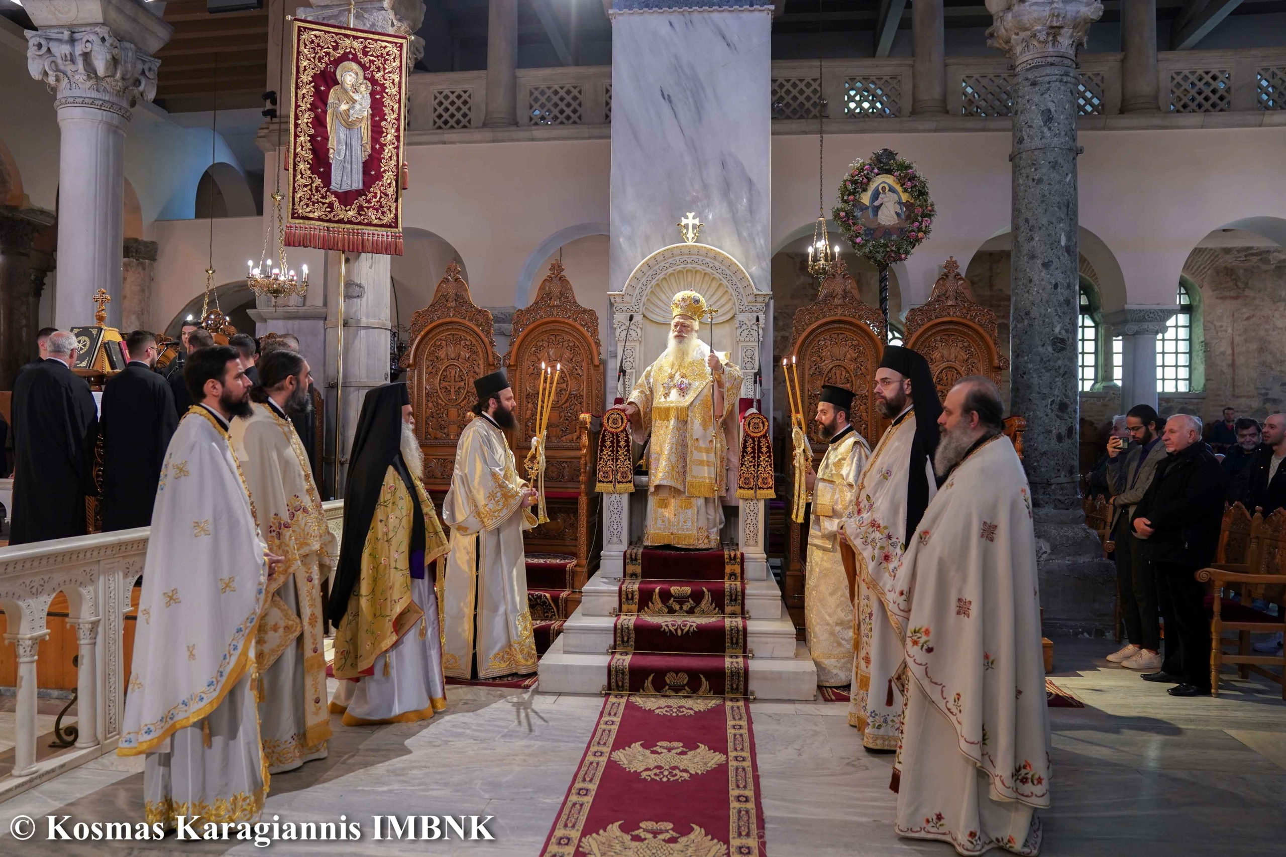 Αἰσθάνομαι ἰδιαιτέρως εὐγνώμων πρός τόν ἐν τοῖς ἁγίοις αὐτοῦ ἐνδοξαζόμενο Θεό καί πρός τούς ἑορταζομένους ἁγίους, γιατί εἶχα τή χαρά καί τήν εὐλογία νά ἱερουργήσω κατά τή σημερινή Κυριακή στόν περίκλυτο αὐτό ἱερό ναό τοῦ πολιούχου μας ἁγίου μεγαλομάρτυρος Δημητρίου τοῦ μυροβλύτου, καί νά συνεορτάσω καί νά συμπανηγυρίσω μαζί σας μαζί μέ τίς Μυροφόρες καί τούς ἁγίους τῆς πόλεώς μας.