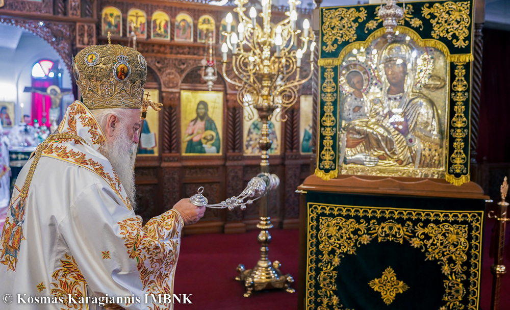 Ως εκ τούτου, το πρωί της Δευτέρας, ο Σεβασμιώτατος Μητροπολίτης μας κ. Παντελεήμων λειτούργησε και κήρυξε τον θείο λόγο στον Ιερό Ναό του Αγίου Λουκά, παρουσία κληρικών, πολιτικών αρχών και ευσεβών πιστών που προσήλθαν για να προσκυνήσουν την Ιερά Εικόνα της Παναγίας και να ευχηθούν στον Ποιμενάρχη μας.