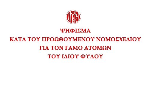 ΨΗΦΙΣΜΑ ΚΑΤΑ ΤΟΥ ΠΡΟΩΘΟΥΜΕΝΟΥ ΝΟΜΟΣΧΕΔΙΟΥ ΓΙΑ ΤΟΝ ΓΑΜΟ ΑΤΟΜΩΝ ΤΟΥ ΙΔΙΟΥ ΦΥΛΟΥ